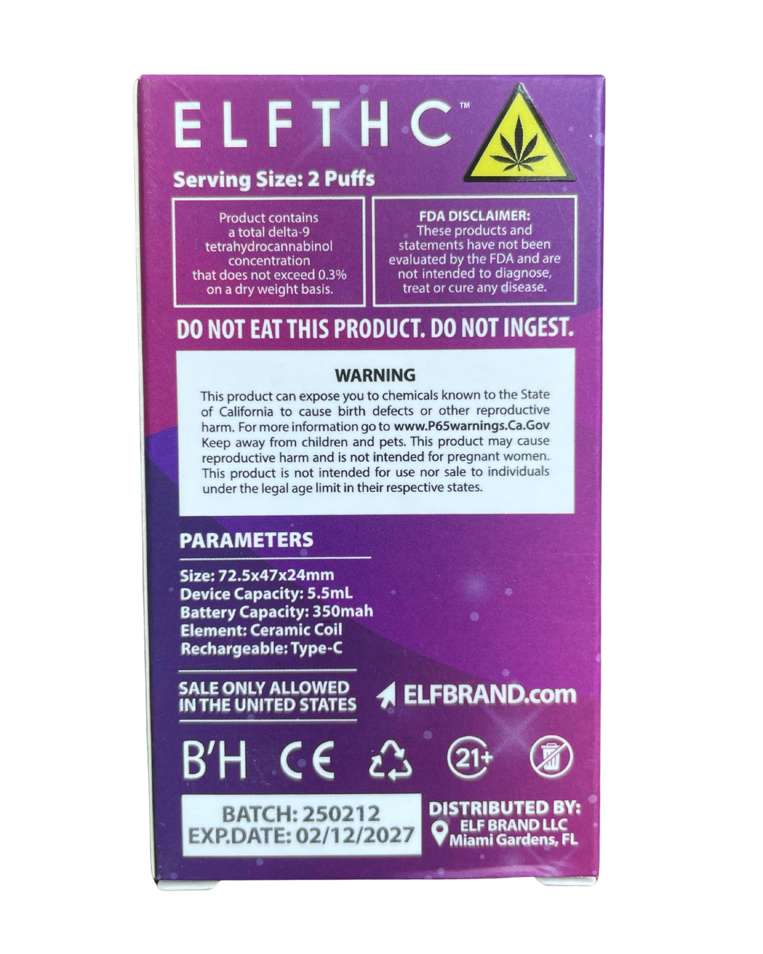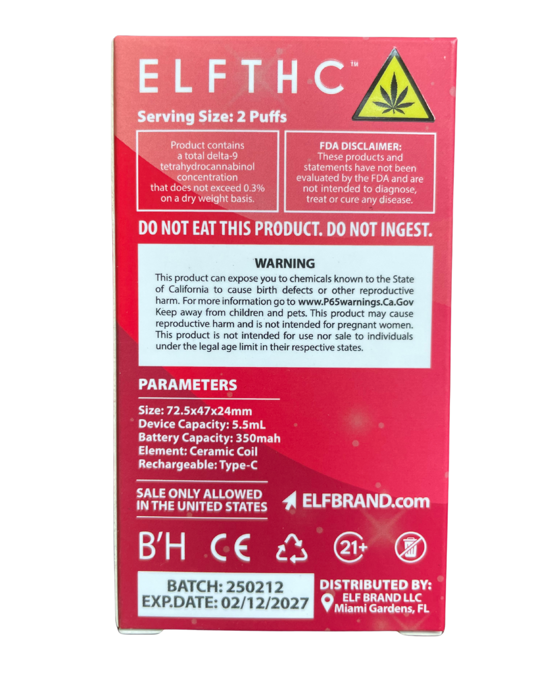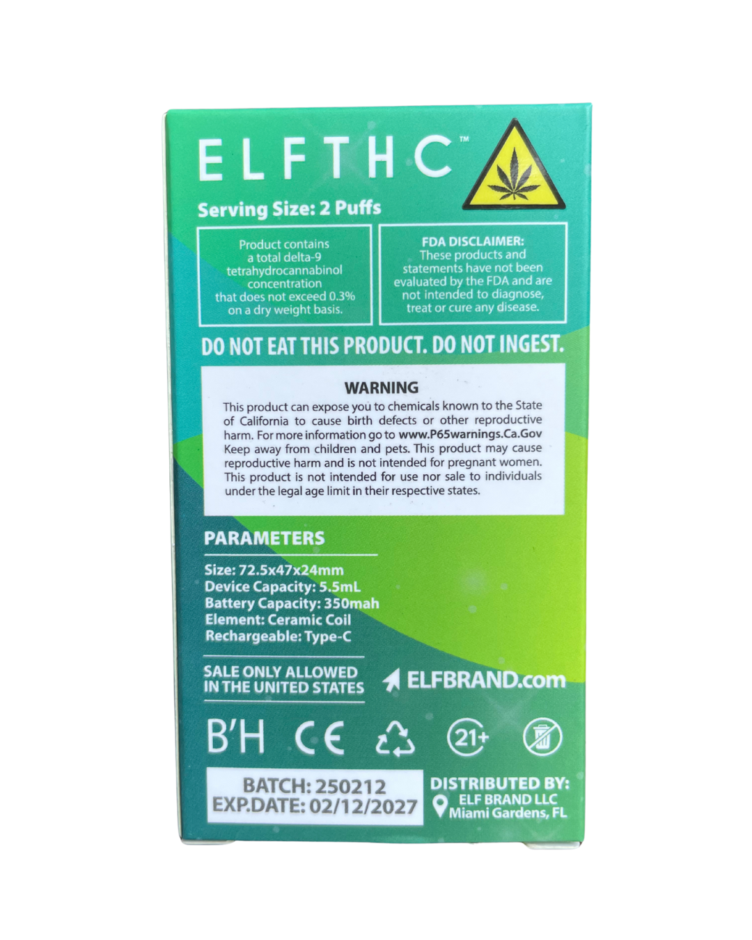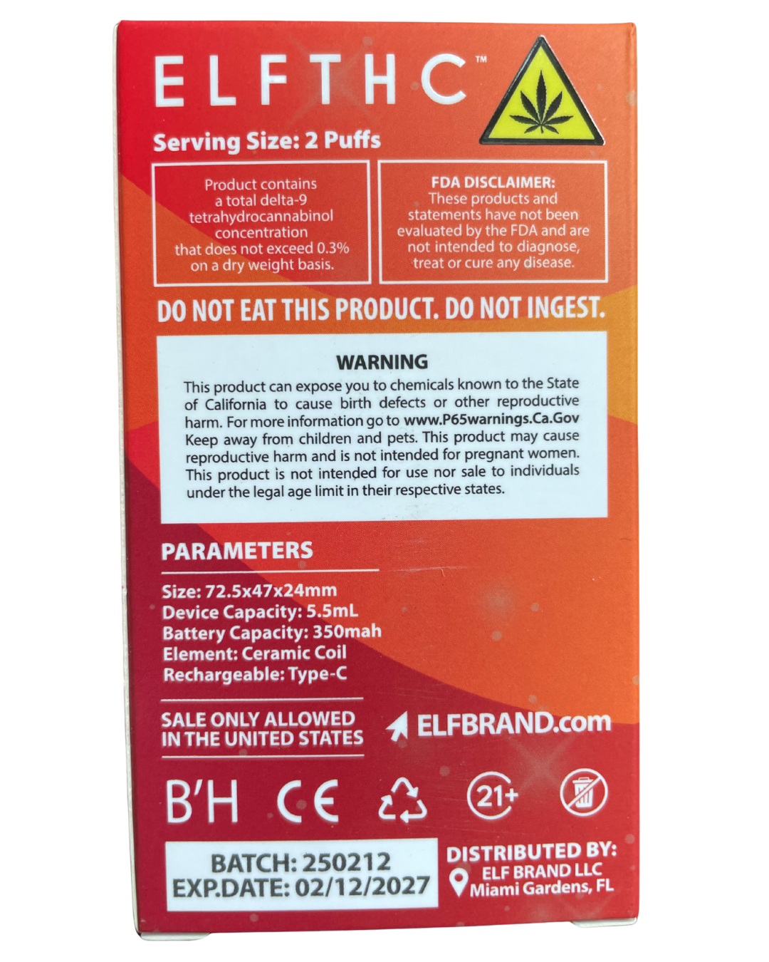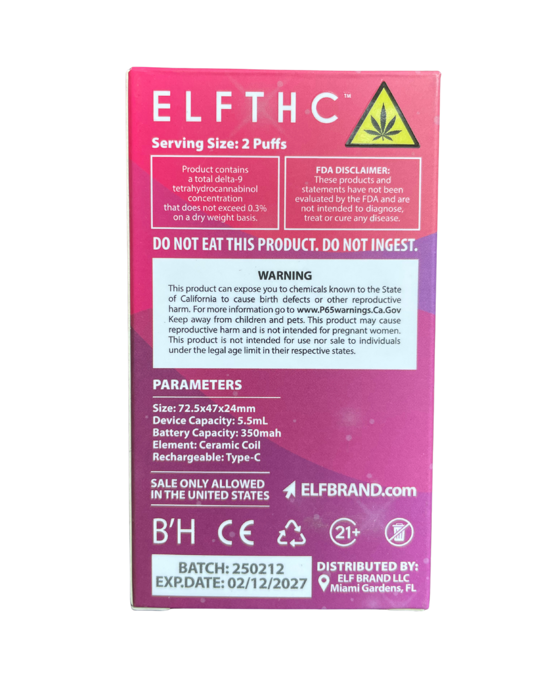 Vaporizadores desechables ELF THC, la manera perfecta de disfrutar de tus placeres culpables sin ningún problema. Estos vaporizadores están diseñados para proporcionar una calada suave y satisfactoria que te dejará con ganas de más. Con una capacidad de 5 ml, son perfectos para usarlos mientras viaja y caben fácilmente en su bolsillo o bolso. Ya seas un fumador experimentado o un novato, estos vaporizadores seguramente satisfarán tus antojos.